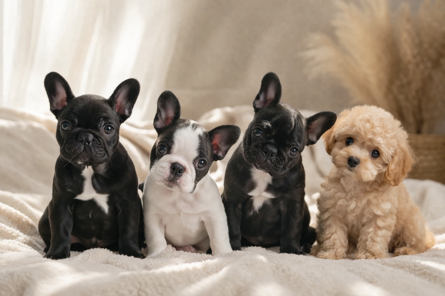 French Bulldogs, French Doodles, and Miniature Poodles — ready for their forever homes.